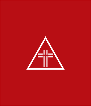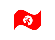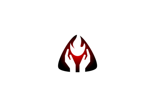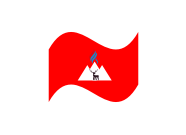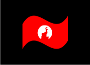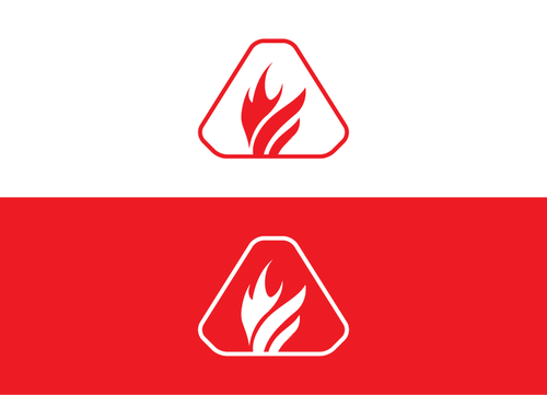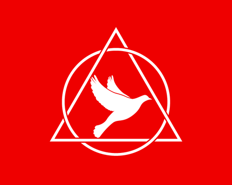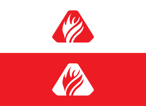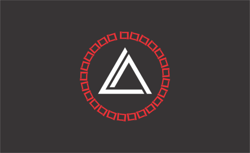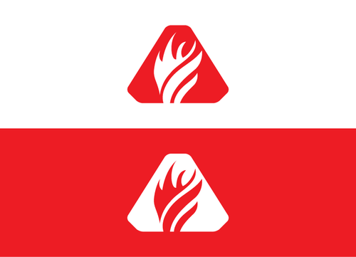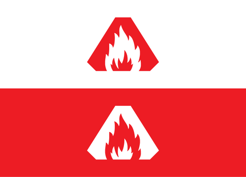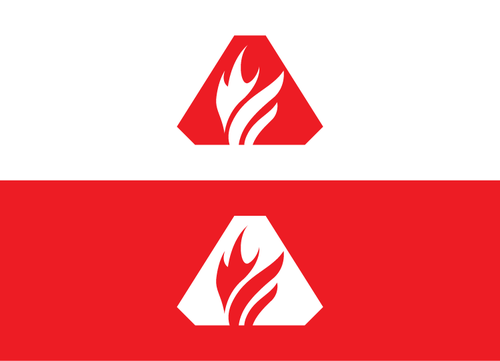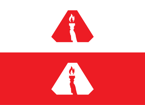 A chamfered triangle surrounding a geometrical shape(s) or object, ei an animal, human gesture, flame or some other item within this realm. Preferably the symbol will be either white or black with a red backdrop on the flag.
