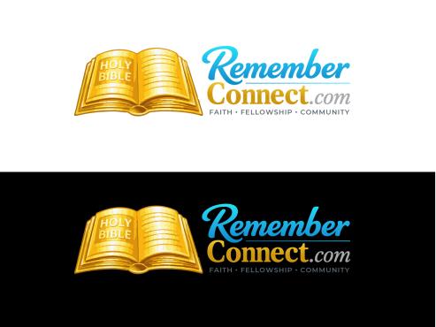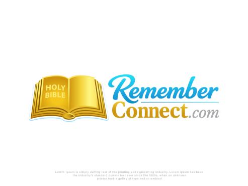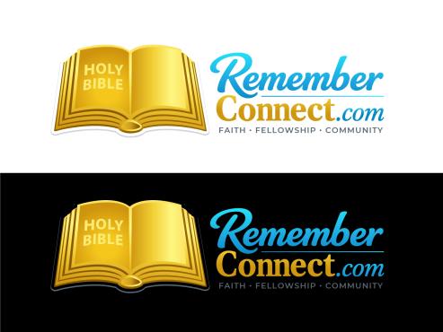I want the current logo but without the sunshine in the logo and remove the circle part from the bible where the pages connect and just have pages- make Remember more like a medium sky blue and connect more gold like the Holy Bible part- remove all white from the background remove Faith fellowship and community make the .com in italic and maybe a different color? Need transparent background