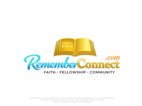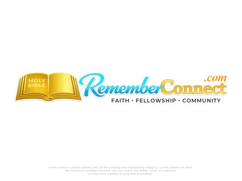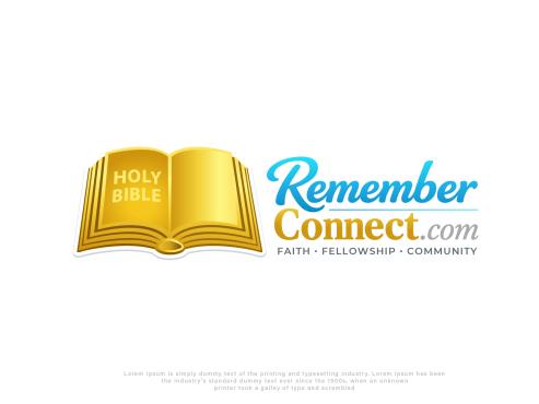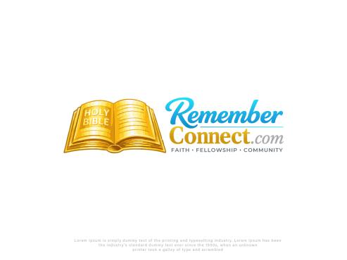 I want the current logo but without the sunshine in the logo and remove the circle part from the bible where the pages connect and just have pages- make Remember more like a medium sky blue and connect more gold like the Holy Bible part- remove all white from the background remove Faith fellowship and community make the .com in italic and maybe a different color? Need transparent background
