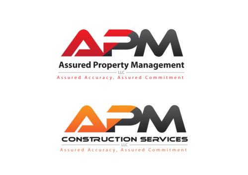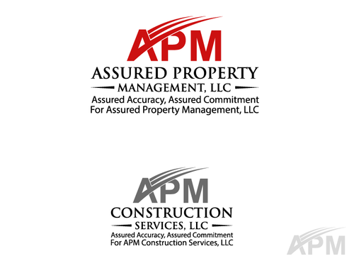 Requirement Two Logos: Logo A: Design Text: APM Company name: Assured Property Management, LLC Optional Tagline: Assured Accuracy, Assured Commitment For Assured Property Management, LLC we would like to see red, black, gray, and white. Logo B: Design Text: APM Company name: APM Construction Services, LLC Optional Tagline: Assured Accuracy, Assured Commitment For APM Construction Services, LLC we are open to your ideas. Note: please use different color from Logo A. I don't want them to be the same color