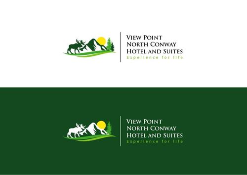 For the logo we need the mountain peak and moose animal symbol.Also an indication for rooftop bar and restraunt and a valley view from the hotel. This place is going to be in the middle of white mountain national forest and at the scenic view point. Please google the location for the view i.e 3599 white mountain highway, North Conway, NH , 03860.