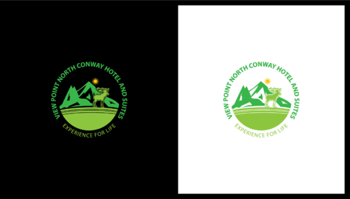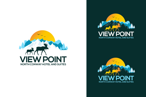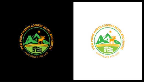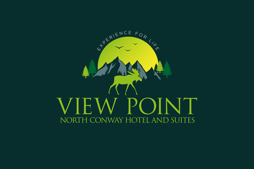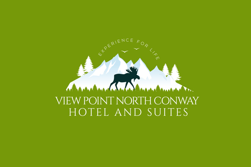 For the logo we need the mountain peak and moose animal symbol.Also an indication for rooftop bar and restraunt and a valley view from the hotel. This place is going to be in the middle of white mountain national forest and at the scenic view point. Please google the location for the view i.e 3599 white mountain highway, North Conway, NH , 03860.